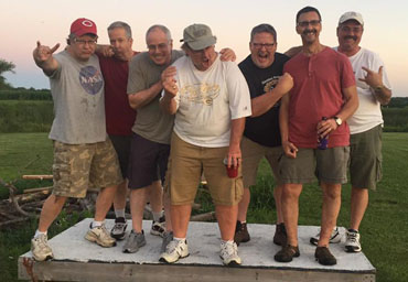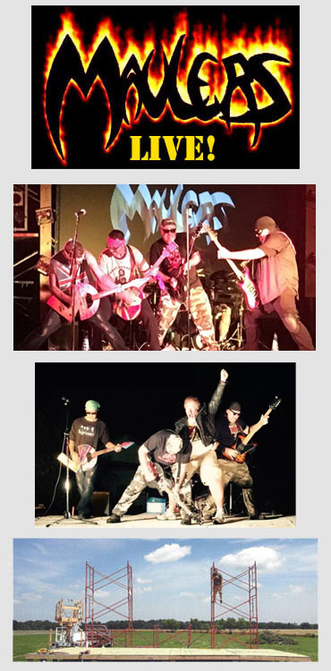 There was a nice couple who lived in a barn on a farm near Camp Point, IL. They decided to get married in 2010 and asked the Maulers to perform at their wedding reception. After that, a stage was constructed (picture right) and Swinegrass, as the farm was named, hosted several events including Live at Swinegrass (2013), Sheer Shart Attack (2014), Mauleroo (2016), Stinko de Maulo (2018), The End (2021) and MaulerMania (2024). These continued the tradition of festival type events featuring local musicians and bands with the Maulers closing out the evening.